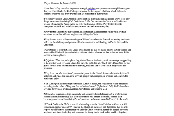 Prayer Ventures – January 2025